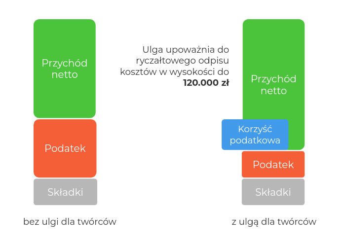 Uwaga: przytoczone wyliczenia należy traktować szacunkowo. Faktyczne korzyści ze stosowania ulgi zależą od indywidualnych parametrów umowy o pracę czy też kontekstu powstawania prac twórczych!